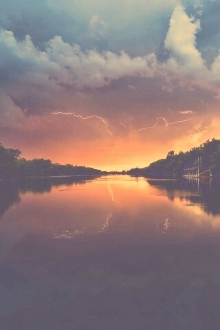 «Молнии на фоне заката, стандартные обои mac»