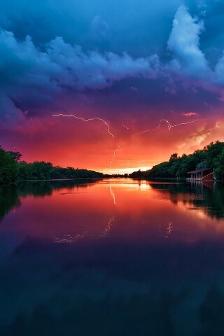 «Молнии на фоне заката, стандартные обои mac»