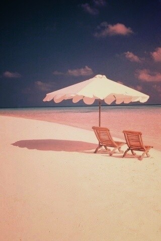 «Песчаный пляж с двумя жезлонгами»