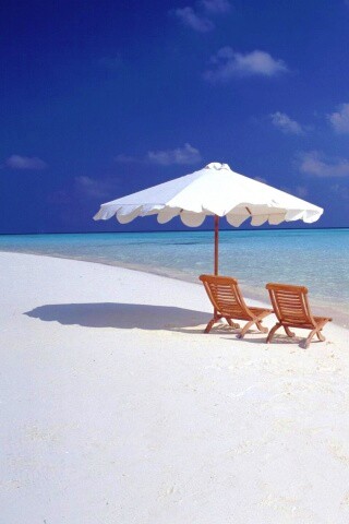 «Песчаный пляж с двумя жезлонгами»