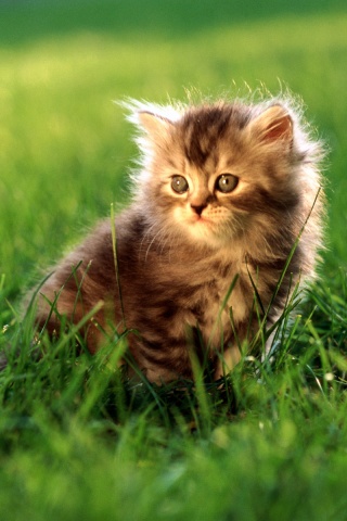 «Пушистый котенок в траве»