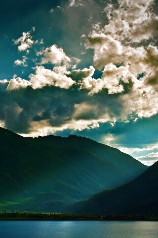 Обои для рабочего стола «Свет на склонах гор» 320х480 с фильтром vibrance (оригинал 2560х1600)