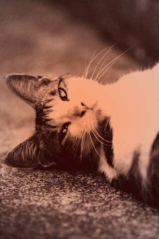 Обои для рабочего стола «Кот лежит на спине» 320х480 с фильтром toaster (оригинал 1600х1200)