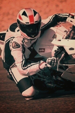 «Байкер в белой экиперовкена Априлия РСВ4»