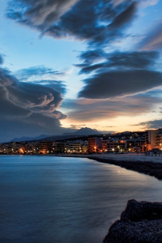«Красивый закат над городом у моря»