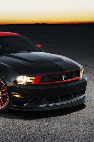 Обои для рабочего стола «Черный Форд Мустанг с красными полосами» 320х480 (оригинал 1920х1200)