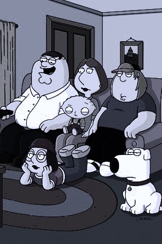«Гриффины всей семьей перед телевизором»