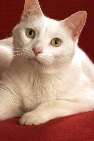Обои для рабочего стола «Белой кот на красном диване» 320х480 (оригинал 1680х1050)