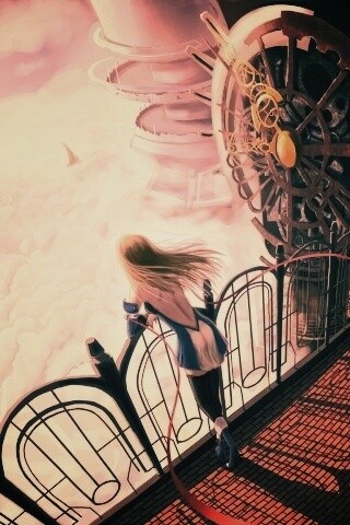 Обои для рабочего стола «Девушка в городе над облаками» 320х480 с фильтром earlybird (оригинал 1700х1250)