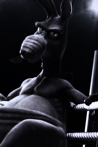 Обои для рабочего стола «Кенгуру-боксер на ринге» 320х480 с фильтром gotham (оригинал 1920х1200)
