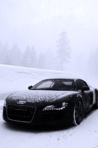 Обои для рабочего стола «Audi R8 зимой» 320х480 с фильтром gotham (оригинал 1600х1200)