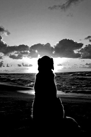 «Собака наблюдающая закат на пляже»