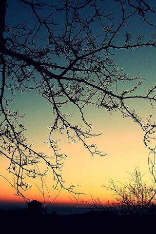 «Закат сквозь ветки деревьев»