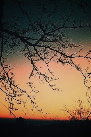 «Закат сквозь ветки деревьев»