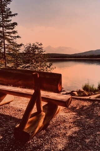 «Деревянная скамья на берегу озера»