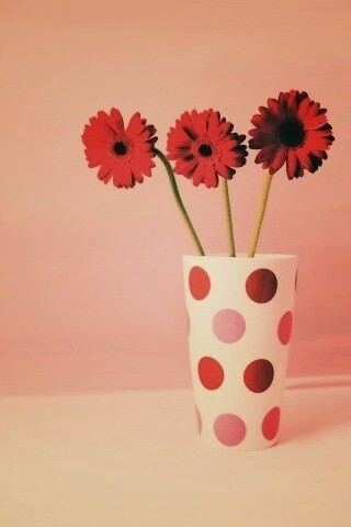 Обои для рабочего стола «Вазочка с тремя красными герберами» 320х480 с фильтром earlybird (оригинал 1920х1200)