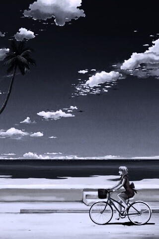 «Девушка едет на велосипеде вдоль берега»