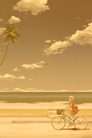 «Девушка едет на велосипеде вдоль берега»