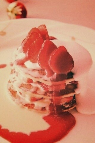 Обои для рабочего стола «Блинчики с клубникой» 320х480 с фильтром earlybird (оригинал 1600х1200)