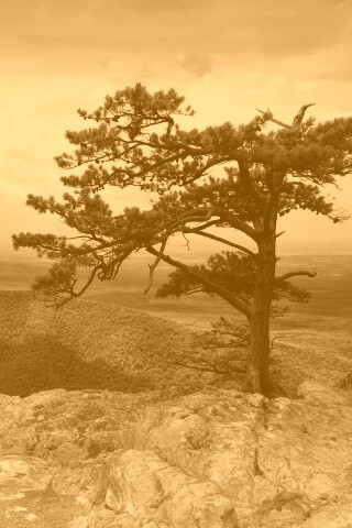 «Горное дерево в черно-белых тонах»