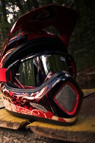 Обои для рабочего стола «Шлем на лесной велотрассе» 320х480 с фильтром vibrance (оригинал 3872х2592)