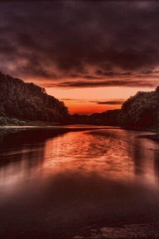 «Багровый закат и водная гладь»