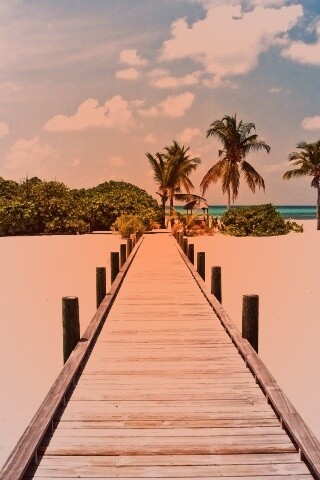 Обои для рабочего стола «Пирс на тропическом острове» 320х480 с фильтром toaster (оригинал 3700х2458)