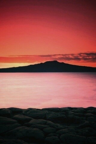 Обои для рабочего стола «Закат за островом Рангитото» 320х480 с фильтром earlybird (оригинал 1920х1200)