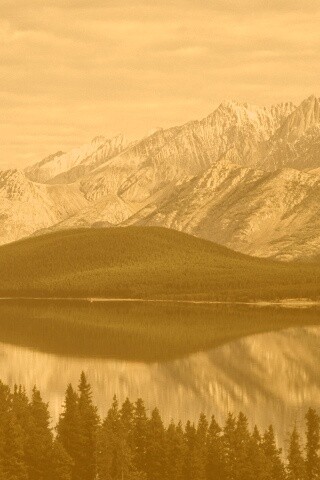 Обои для рабочего стола «Озеро в предгорье» 320х480 с фильтром kelvin (оригинал 1920х1200)