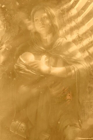 «Девушка с ребенком прячется от монстра»