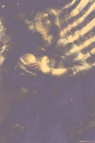 «Девушка с ребенком прячется от монстра»