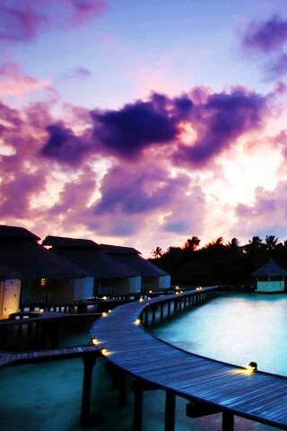 Обои для рабочего стола «Бунгало на воде» 320х480 с фильтром vibrance (оригинал 2560х1600)