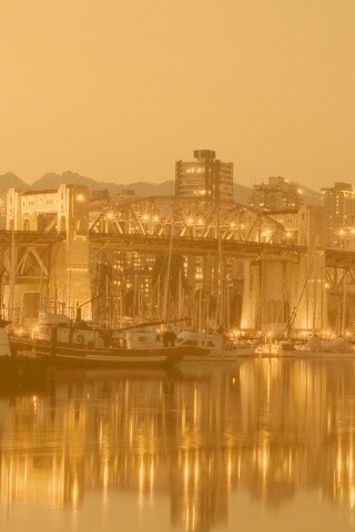 «Мост и катера на закате»