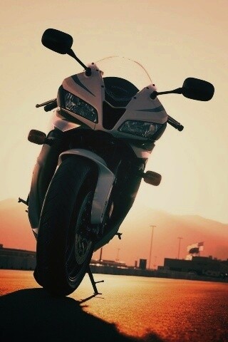 «Мотоцикл на фоне заходящего солнца»