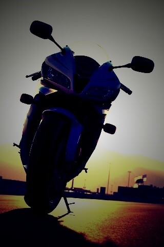 «Мотоцикл на фоне заходящего солнца»