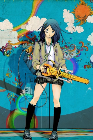 Обои для рабочего стола «Девушка с бензопилой» 320х480 (оригинал 2560х1600)