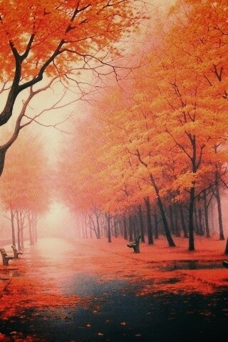 Обои для рабочего стола «Дорога в осень» 320х480 с фильтром earlybird (оригинал 2181х1508)