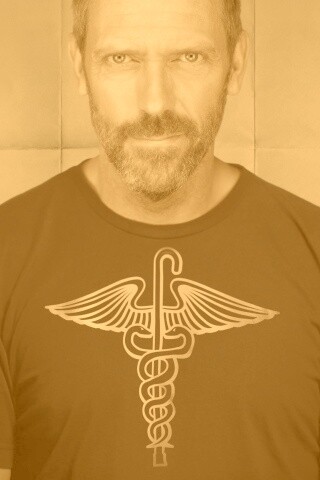 «Доктор Хаус в футболке со змеями на трости»