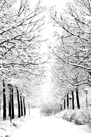 Обои для рабочего стола «Заснеженная аллея» 320х480 с фильтром inkwell (оригинал 2704х1764)