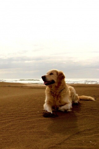 «Красивая собака на оранжевом песке»