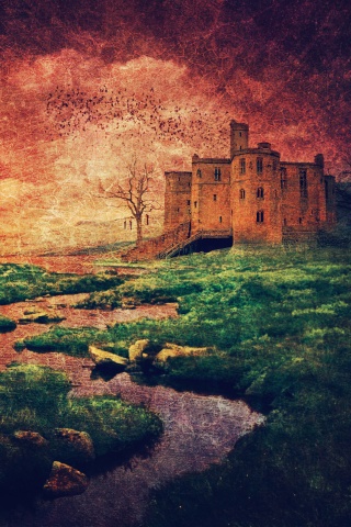 Обои для рабочего стола «Старинный пейзаж с замком» 320х480 (оригинал 2560х1440)