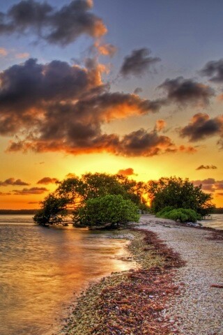 Обои для рабочего стола «Побережье на закате» 320х480 с фильтром vibrance (оригинал 3200х2000)