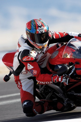 Обои для рабочего стола «Мотоциклист на Хонде» 320х480 (оригинал 1920х1200)