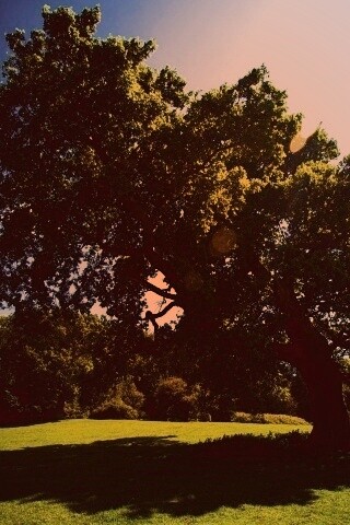 «Большое зеленое дерево на лужайке»