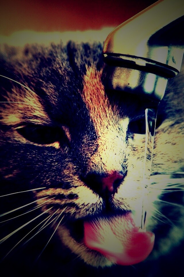 Обои для рабочего стола «Кот пьет из под крана» 640х960 с фильтром lomo (оригинал 2560х1600)