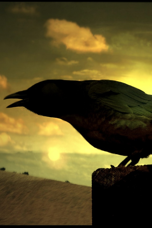Обои для рабочего стола «Чёрный ворон» 640х960 (оригинал 1920х1440)