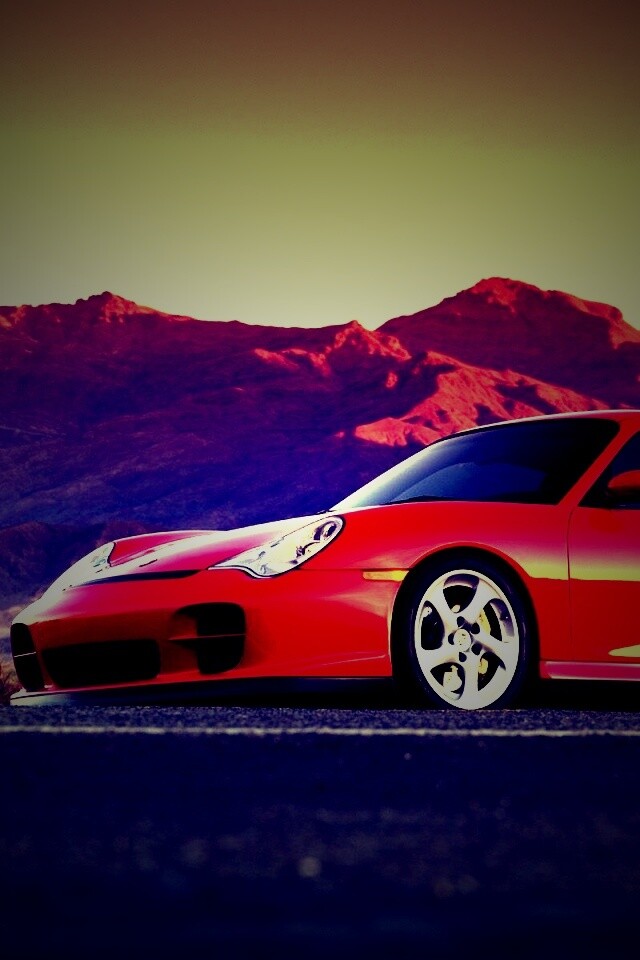 «Красный Порше на фоне гор»