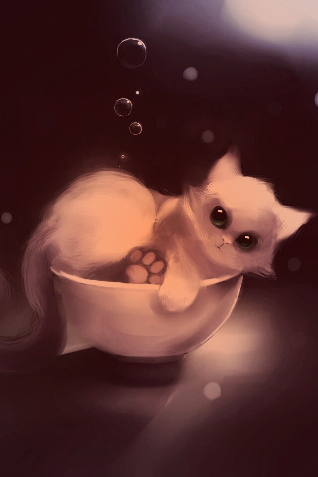 Обои для рабочего стола «Котёнок в миске» 640х960 с фильтром toaster (оригинал 1920х1080)