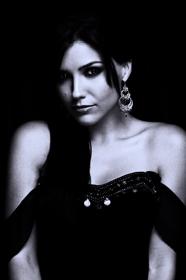 Обои для рабочего стола «София Буш в черном платье» 640х960 с фильтром gotham (оригинал 1920х1200)