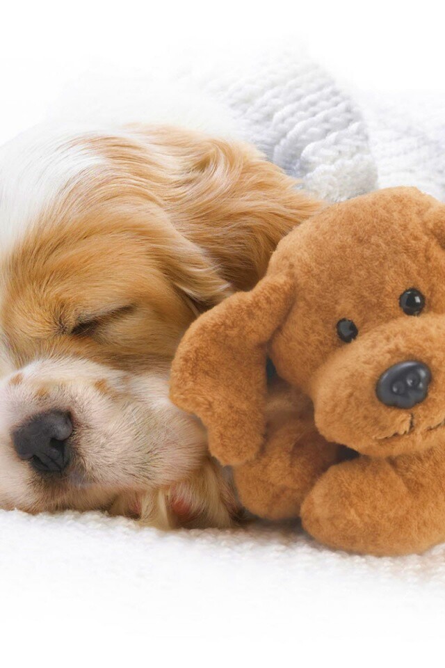 Обои для рабочего стола «Собака спит с игрушкой» 640х960 с фильтром vibrance (оригинал 1920х1200)